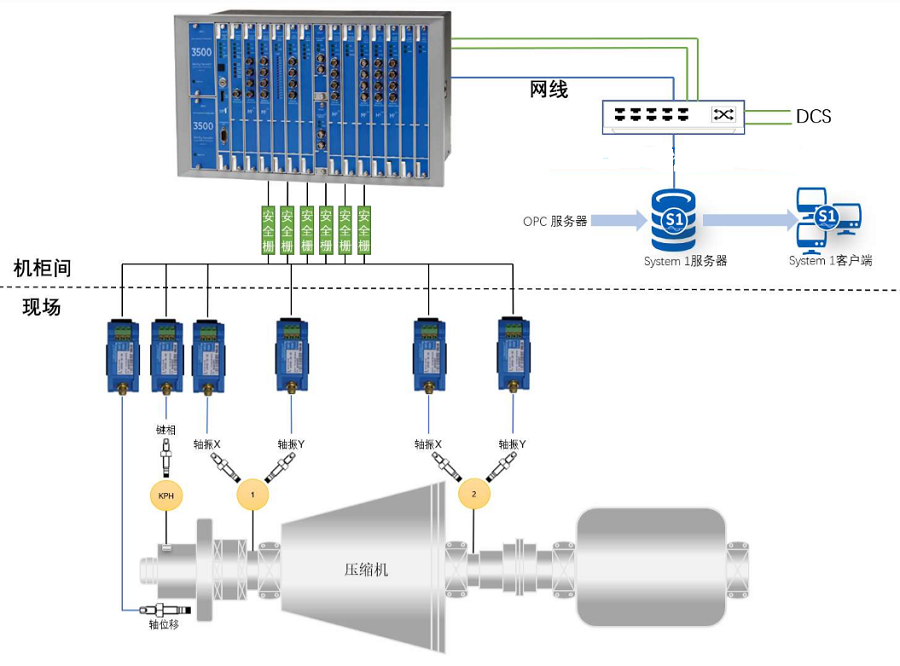 · (如適用),上述軸承溫度測點,需采用3500/60、61溫度監測模塊,或3500/62過程量監測模塊